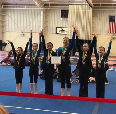 We will participate in 3 local, small meets, one of which is a home meet. The gymnasts will learn and perform the USAG routines: however they will be on a much more lenient scale.